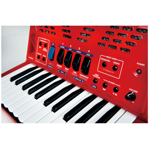 Harmonikkan er með kraftmiklum hljóðum sem líkja eftir raunverulegum hljóðfærum, þar á meðal klassískum harmonikkum, orgelum og strengjum. Þú getur líka vistað og spilað inn þín eigin lög með USB-tengi.