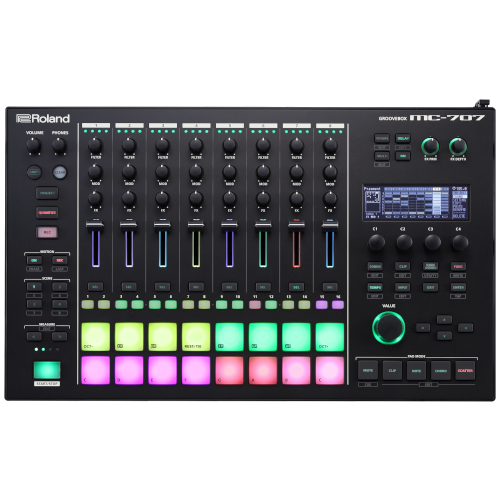 Roland MC-707 Groovebox er græja til að búa til tónlist. Hún hentar bæði byrjendum og þeim sem hafa meiri reynslu. Með þessu tæki getur þú samið, spilað og tekið upp tónlist á einum stað.
